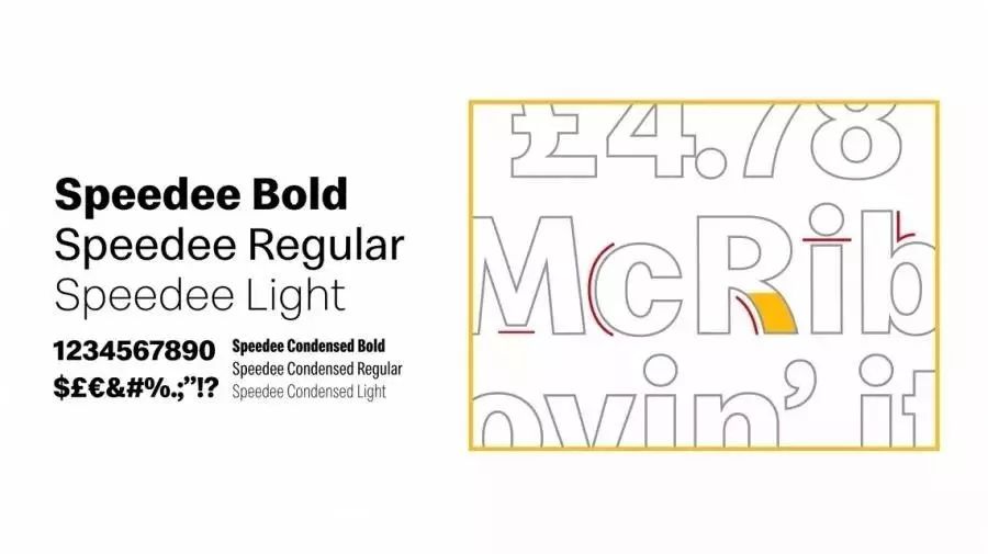 除了紅黃顏色的更改,麥當勞對字體的使用也作了要求,統一運用Speedee字體,分別有3中字重選擇。