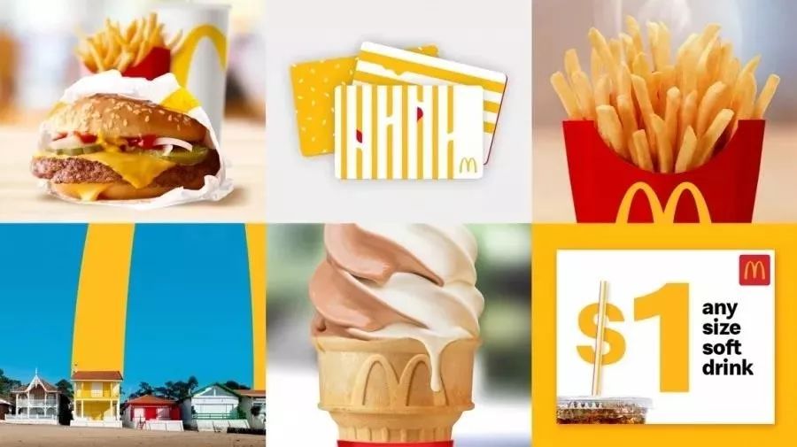 麥當勞統一視覺形象設計的第一步就是把備受大眾喜愛的元素挑選出來,加大應用。