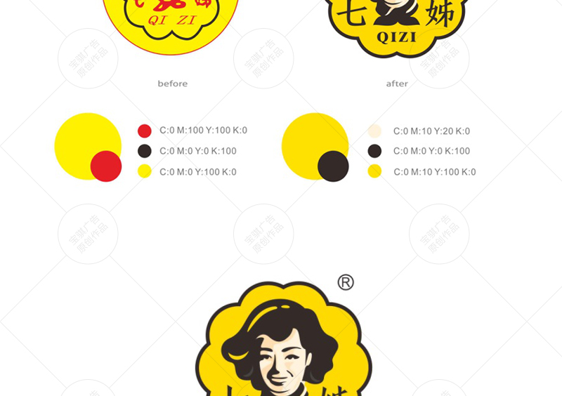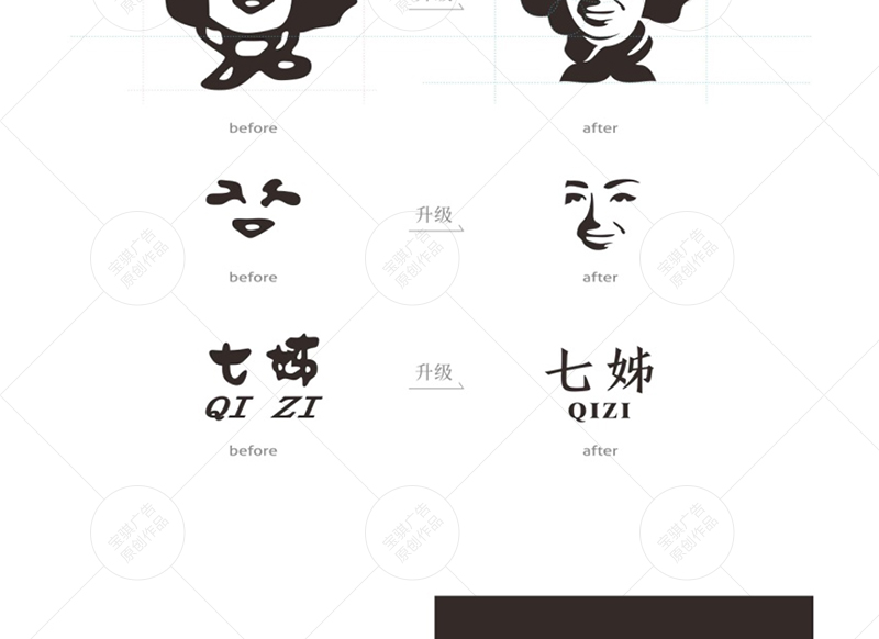 寶騏機構與七姊企業管理層多次溝通,最終決定在保留品牌傳統感的同時,對品牌進行簡約化、標準化的升級,將更加時尚、生動的元素注入傳統品牌之中,用現代化的設計語言形成對“傳承的品牌”的詮釋。