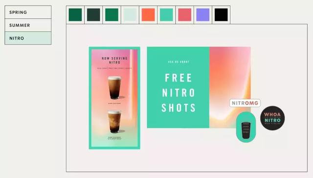 星巴克除了主色和輔助色,還根據不同季節也設定了一些顏色,讓人們能感受到品牌也在隨著季節的變化而變化,真是考慮的太貼心了。