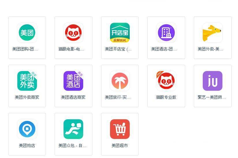 像這種相似的例子還有很多,例如從美團的產品線上來看,一直致力于提供大家吃喝玩樂一站式服務,但是旗下子品牌視覺系統較為凌亂,不成系統。