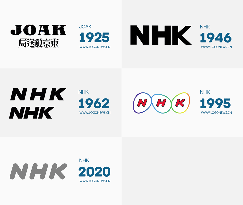 1946年更名NHK 后,日本廣播協(xié)會(huì)使用日語讀音羅馬化「Nippon Hoso Kyokai」的首字母設(shè)計(jì)了簡潔的無襯線字標(biāo)。