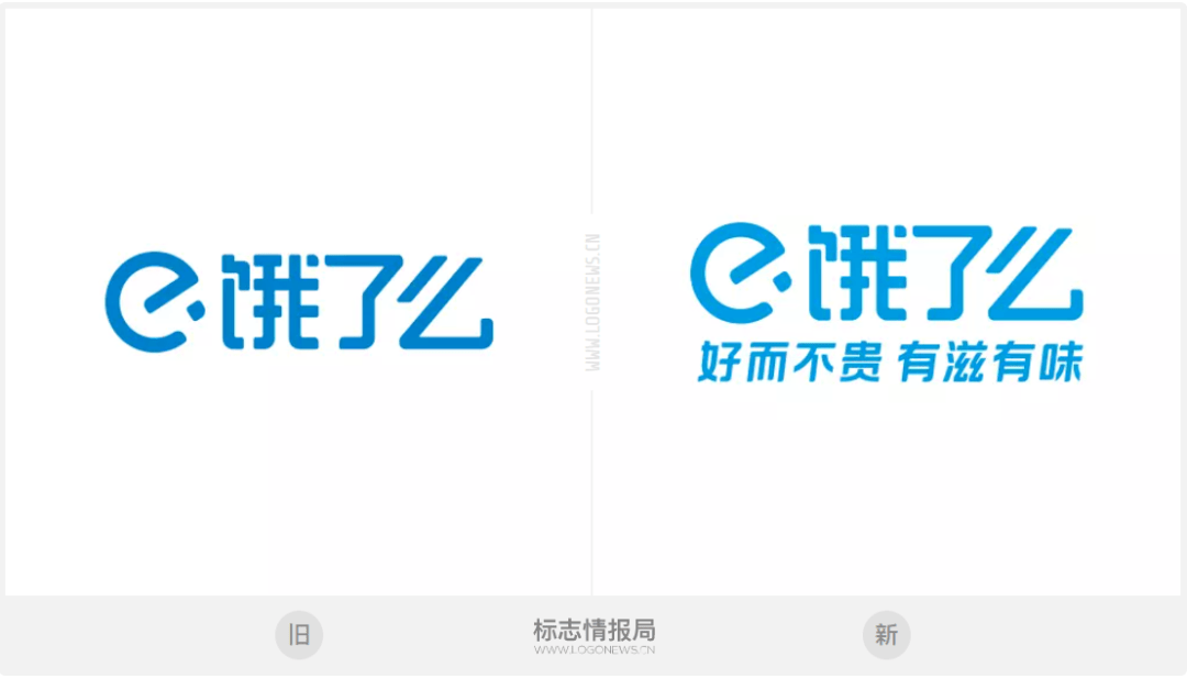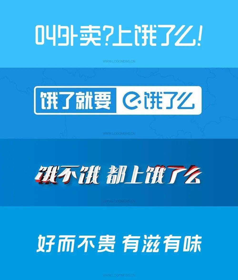 直到2016年7月份,LOGO的邊框才被剔除,重新設(shè)計(jì)了字體,并將「e」圖標(biāo)稍微向上傾斜變成了57度斜角,諧音「我吃」。自此后,該標(biāo)一直用到今天。