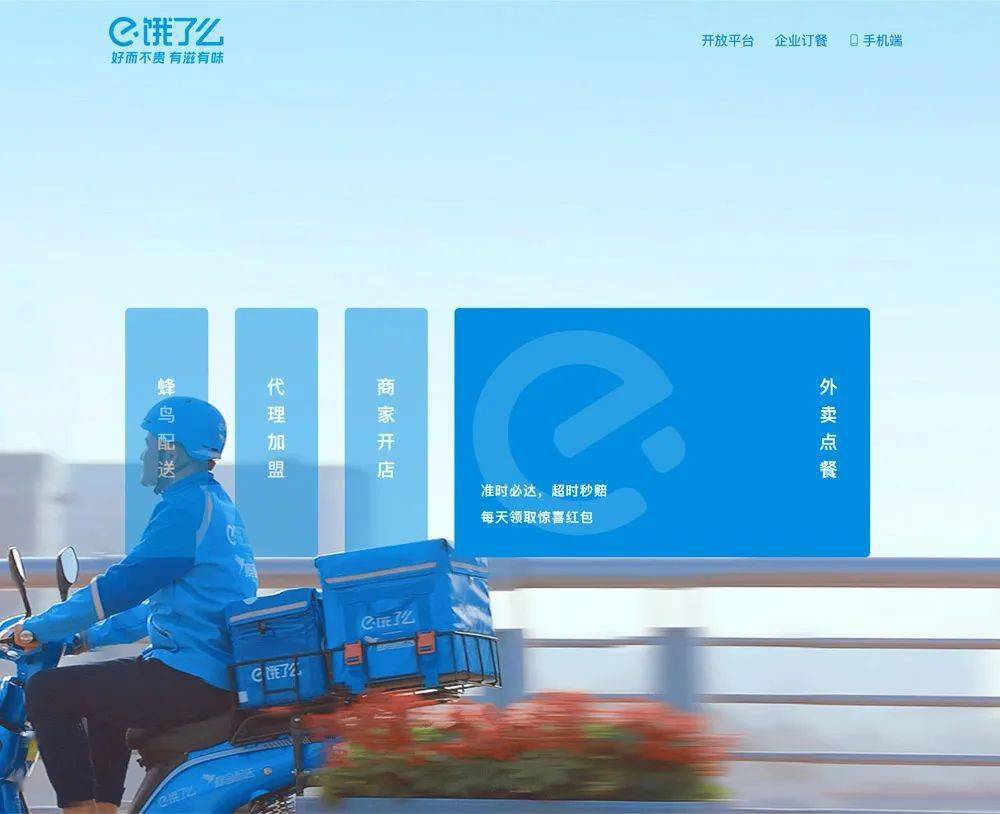 我們?cè)陴I了么的官方網(wǎng)站上,并沒(méi)有找到和其App相同的藍(lán)色