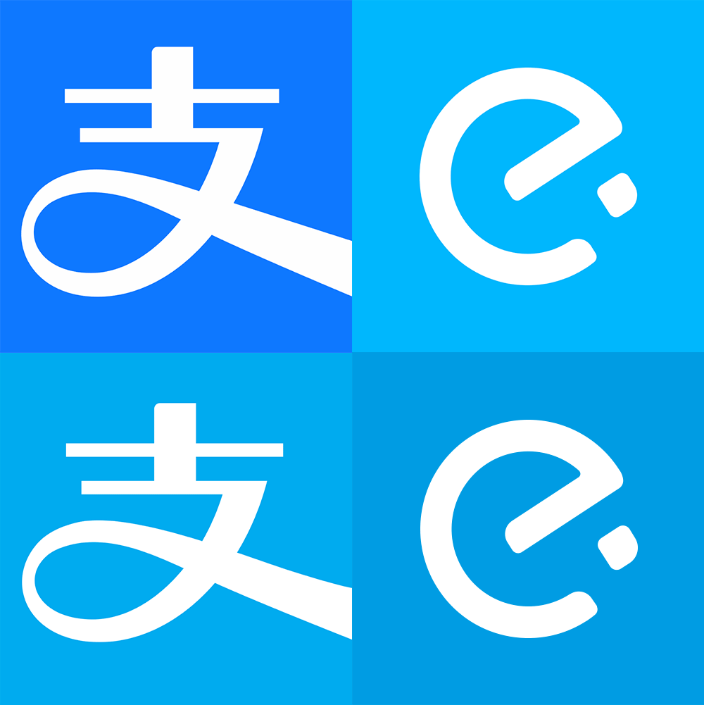 左上(支付寶新藍(lán)色)、左下(支付寶舊藍(lán)色)、右上(餓了么新藍(lán)色)、右下(餓了么舊藍(lán)色)