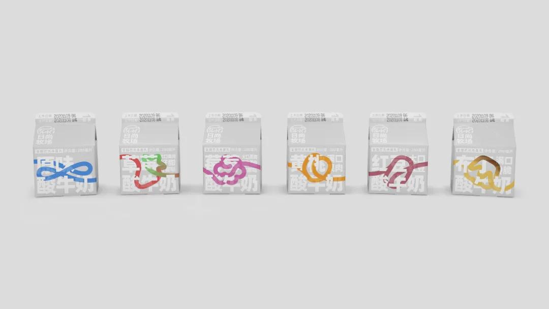 這款酸奶包裝設計,簡約、現代且獨特。有多種口味,根據不同口味繪制了圖形,這些圖形又匯聚成一條彩繩,格外醒目,鮮明且生動,象征著產品成分的純粹和原料的新鮮。