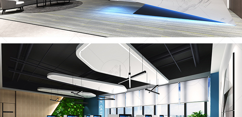 該項占地2400平方米共兩層,在設計裝修上體現了企業國資屬性、科技行業屬性,將穩重內斂與靈動開放的設計風格融合呈現。兼容現代化、人性化的設計理念,并滿足企業對辦公場所軟硬件的需求。